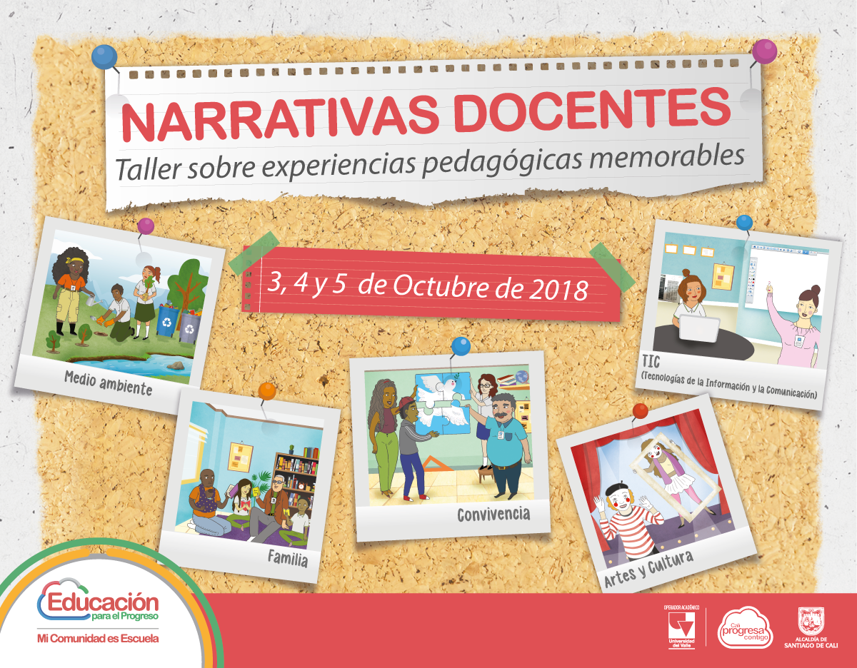 Del 3 al 5 de octubre de 2018 se realizará el encuentro académico Narrativas Docentes: Taller sobre experiencias pedagógicas memorables, organizado por el proyecto Fortalecimiento de Competencias Básicas desde la Transversalidad, que hace parte de la iniciativa Mi Comunidad es Escuela. Este encuentro tiene como propósito que los docentes puedan compartir y discutir las formas en las cuales, desde sus aulas, ponen en práctica la transversalidad, las competencias básicas, las habilidades para la vida y la relación escuela + comunidad.