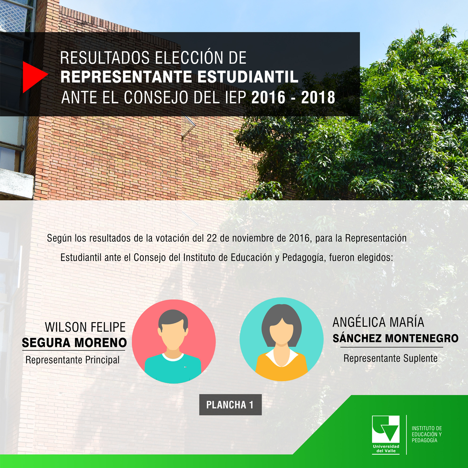 Con una amplia participación de estudiantes, se llevó a cabo el pasado 22 de noviembre, la elección de los nuevos representantes estudiantiles ante el Consejo del Instituto de Educación y Pedagogía. Según los resultados, fueron elegidos Wilson Felipe Segura Moreno y Angélica María Sánchez Montenegro como representantes principal y suplente, respectivamente.
