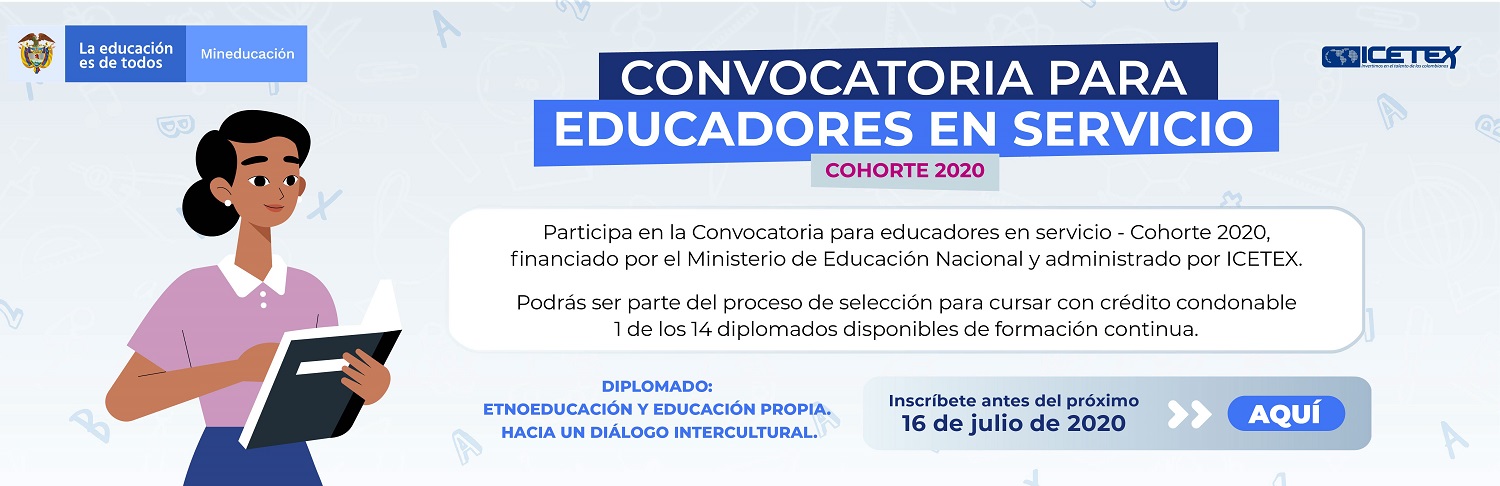 Como parte de la Convocatoria para Educadores en Servicio – Cohorte 2020 – del Ministerio de Educación Nacional y con administración del ICETEX , la Universidad del Valle se complace en presentar el diplomado “Etnoeducación y Educación Propia, Hacia un Diálogo Intercultural”. Educador, educadora, si estás interesado en hacer parte de esta experiencia formativa tienes que realizar tu preinscripción dando click a la foto superior o aquí