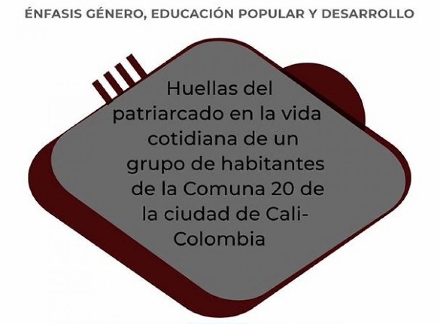 La Maestría en Educación del Instituto de Educación y Pedagogía de la Universidad del Valle, en el énfasis en Género, Educación Popular y Desarrollo, invita a la sustentación de la tesis "Huellas del patriarcado y prácticas de resistencia en la vida cotidiana de un grupo de habitantes de la Comuna 20 de la ciudad de Cali-Colombia", elaborada por las estudiantes Elizabeth Figueroa Miranda y Schirley Ruiz López y tutoriada por la profesora Norma Lucía Bermúdez Gómez. La actividad académica se realizará el martes 14 de julio de 2020, a las 6:00 p .m. por URL: :https://lobby.sar.ruav.edu.co/#/XJIXV8X2WGK