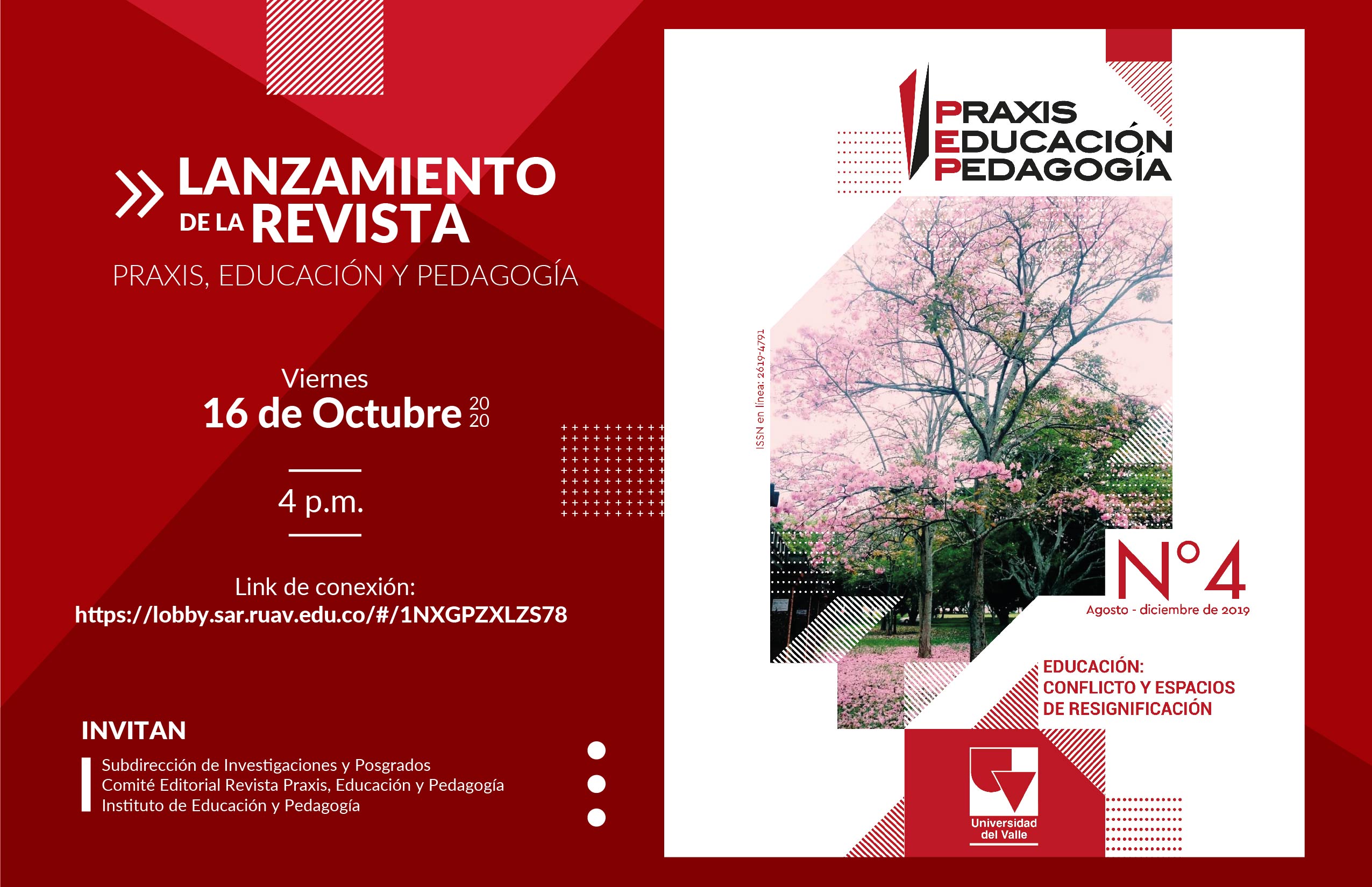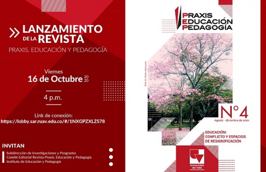 Nos complace invitarlos a la presentación virtual del cuarto número de la revista Praxis, Educación y Pedagogía, del Instituto de Educación y Pedagogía de la Universidad del Valle. El acto de lanzamiento se llevará a cabo el día viernes 16 de octubre de 2020, de manera virtual mediante el Sistema Automático de Reservas – SAR. Para nosotros sería un honor contar con su presencia. Hora inicio 4:00 p.m.