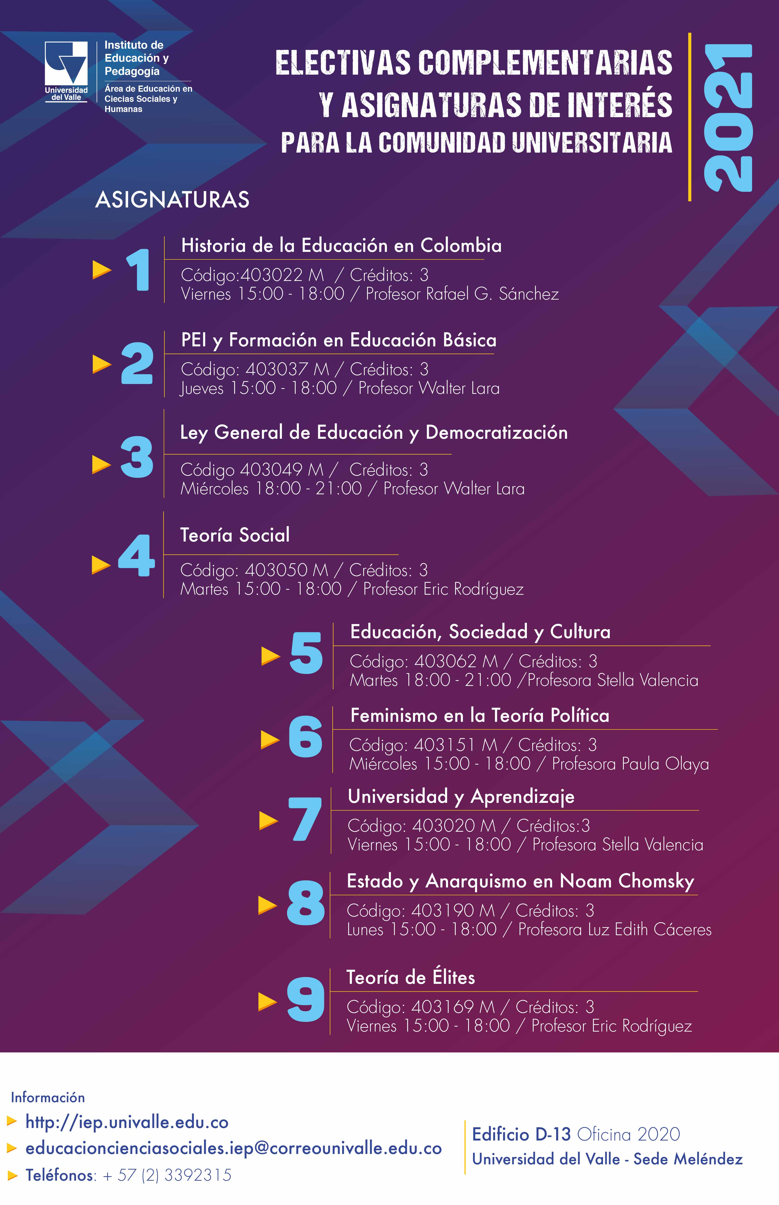 Principalmente relacionadas con la educación y la teoría política, el Área de Educación en Ciencias Sociales y Humanas del IEP presenta su oferta de electivas complementarias para el primer semestre de 2021.