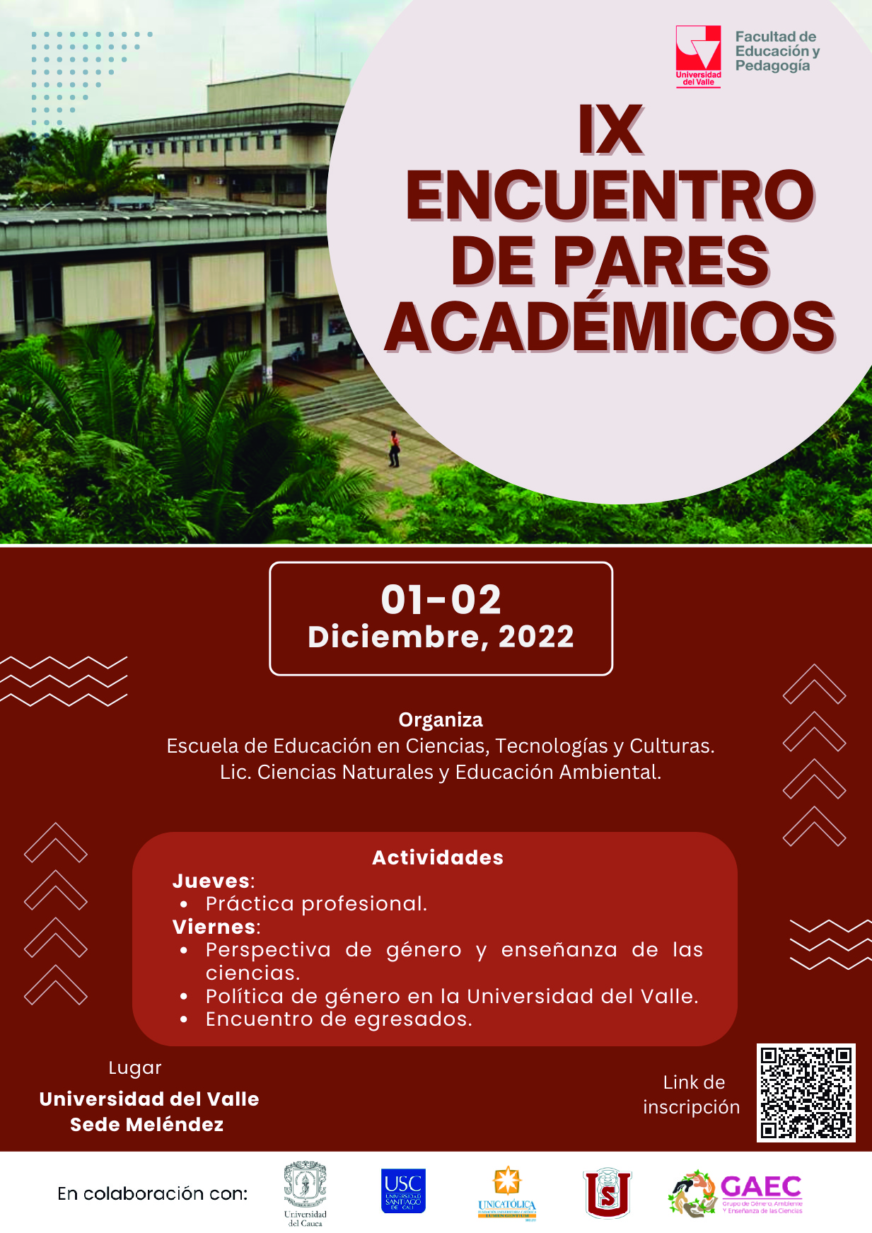 El programa académico de Licenciatura en Ciencias Naturales, te invita a participar del “IX Encuentro de Pares Académicos en la Enseñanza de las Ciencias”, el cual tiene como objetivo propiciar un espacio académico para la socialización de experiencias de docentes y estudiantes en formación inicial. Asimismo, generar un escenario de reflexión académica en la relación de la teoría y la práctica desde diferentes perspectivas.