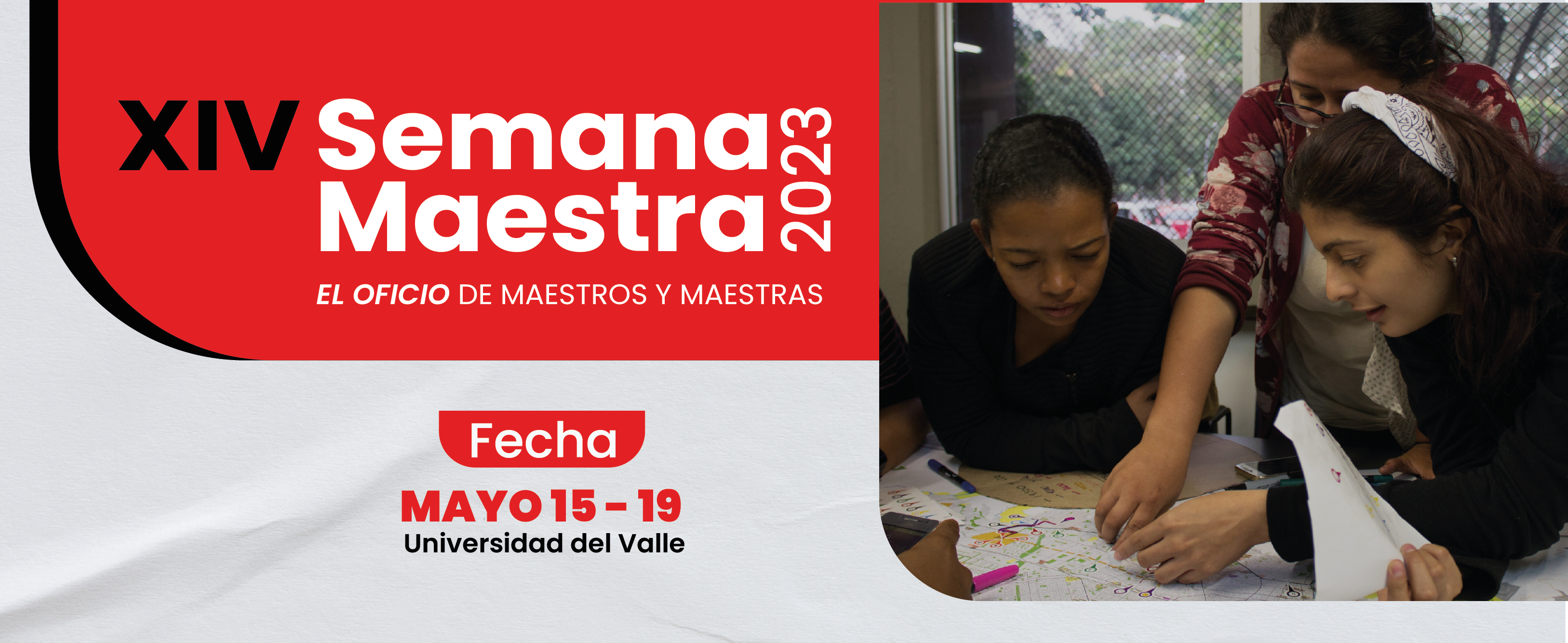 La Facultad de Educación y Pedagogía invita a la comunidad universitaria y caleña en general a participar en la XIV Semana Maestra, a realizarse en la Universidad del Valle entre el 15 y el 19 de mayo del 2023. La celebración de esta Semana representa para la Facultad, una oportunidad de homenajear a maestras y maestros, reflexionando sobre el oficio.