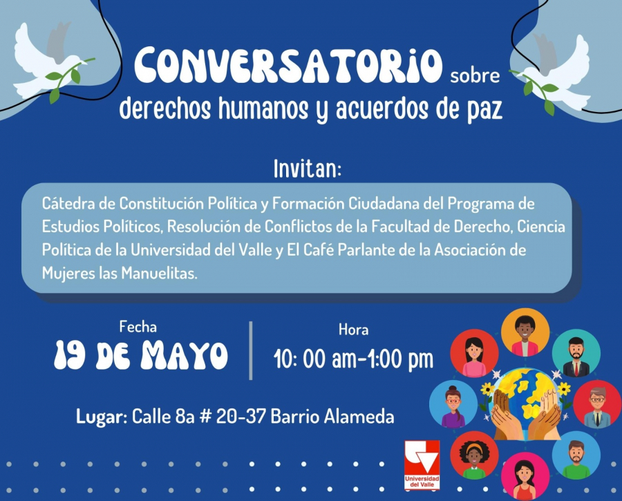 #Prográmate este viernes 19 de mayo con el conversatorio sobre Derechos Humanos y Acuerdos de Paz.
